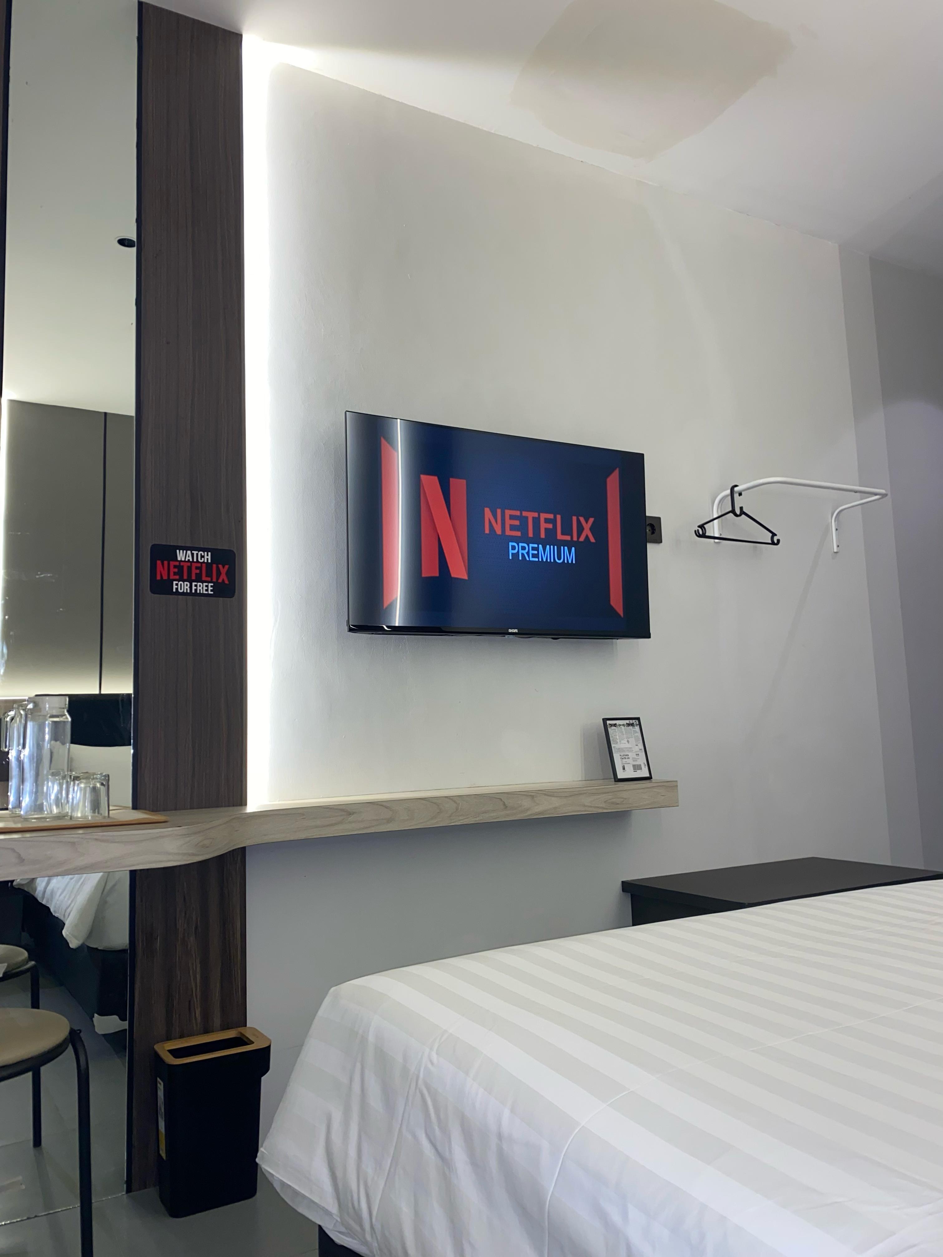 Setiap kamar yang berada di Go Sleep Lite sudah dilengkapi oleh Smart TV yang sudah terhubung dengan internet dan Akun Netflix premium yang dapat menemanimu pada saat staycation atau hanya ingin binge watch dan me-time tanpa diganggu orang.
